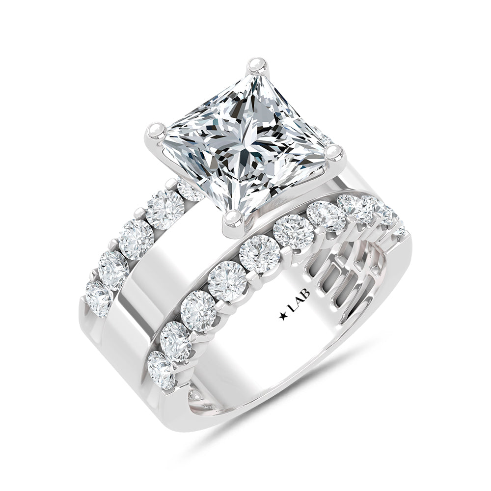 14K White Gold 4 1/2 Ct.Tw. Labgrown Diamond Princess Shape Machine Ring (IGI CERTIFIED CENTER)
