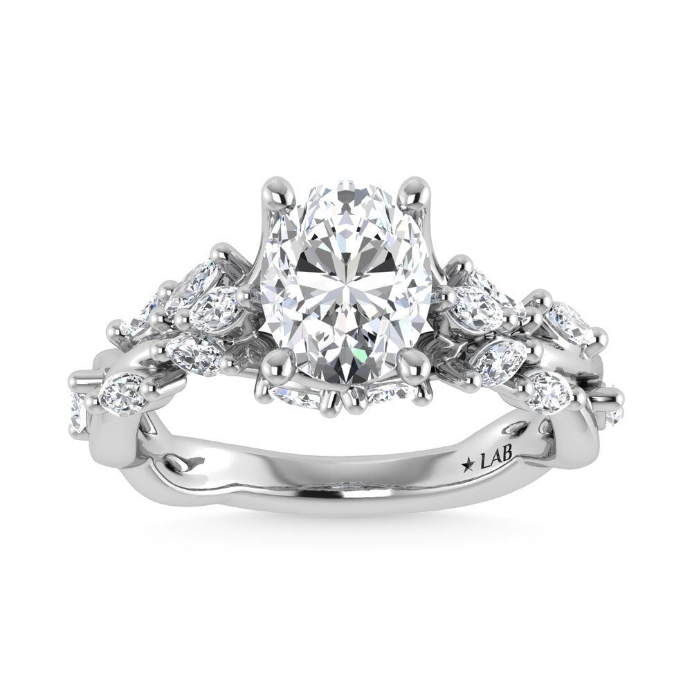 14K White Gold Lab Grown Diamond 2 1/2 Ct.Tw. Oval Shape Engagement Ring (Center 2ct)