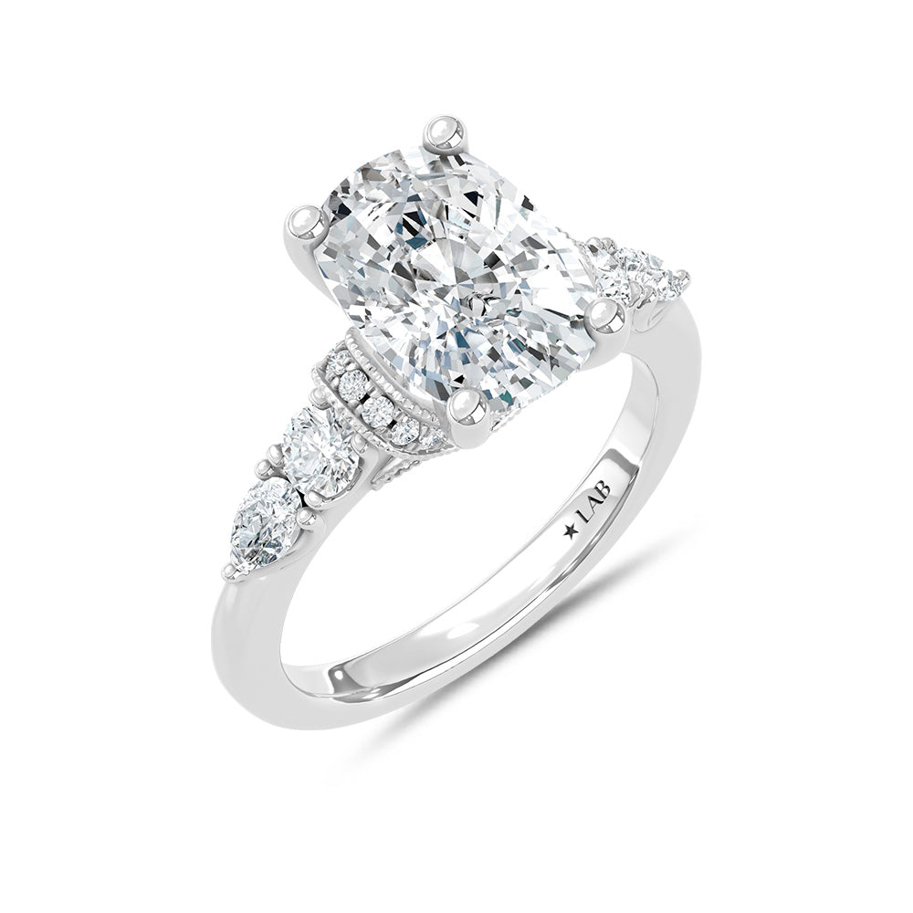 14K White Gold Lab Grown Diamond 3 5/8 Ct.Tw. Engagement Ring (Center 3ct Cushion)