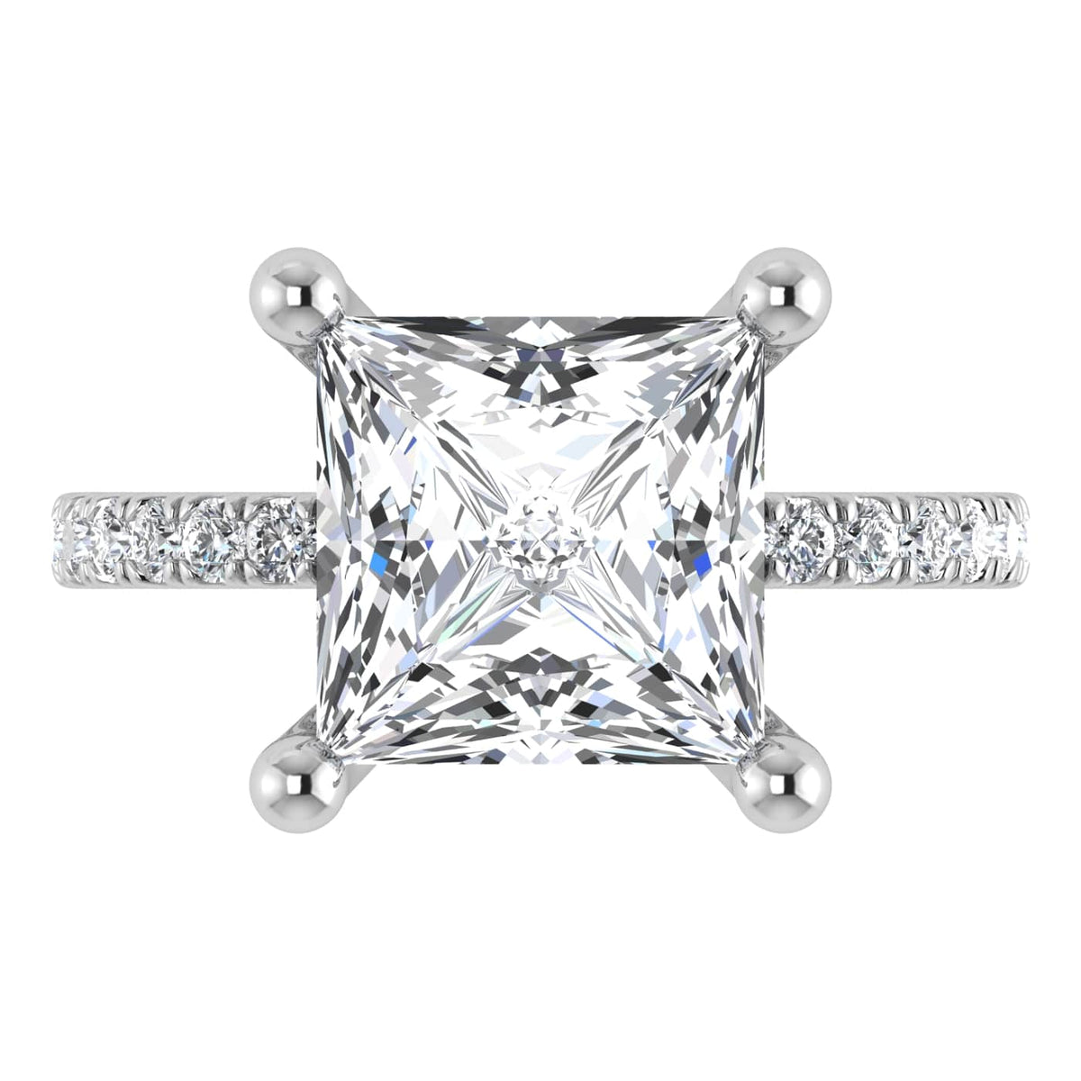 14K White Gold Lab Grown Diamond 4 1/2 Ct.Tw. Princess Shape Halo IGI Certified Engagement Ring (Center 5 ct)