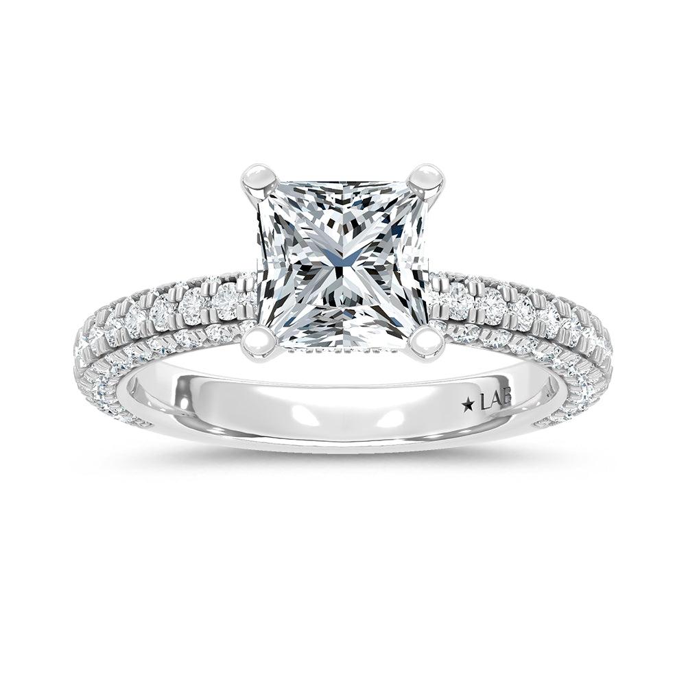 14K White Gold Lab Grown Diamond 4 Ct.Tw. IGI Certified Princess Shape Halo Engagement Ring (Center 3CT)