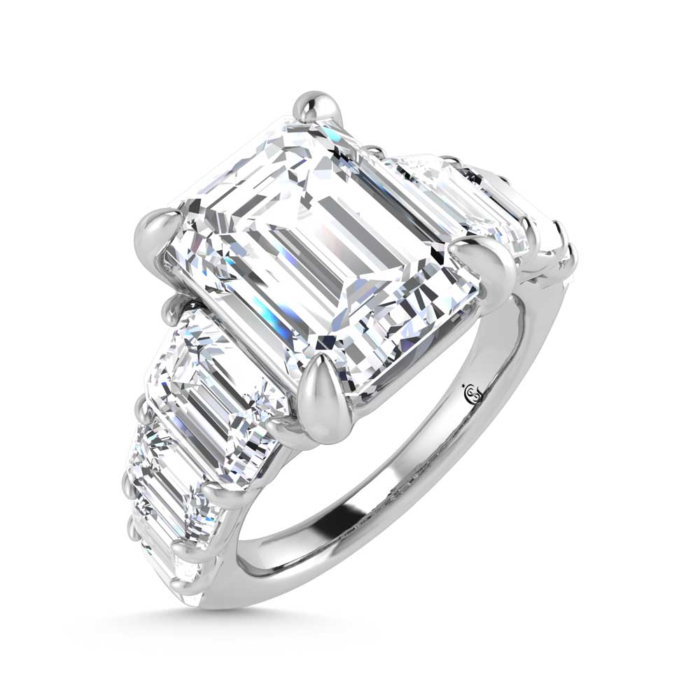 14K White Gold Lab Grown Diamond 7 Ct.Tw. Emerald Shape Engagement Ring