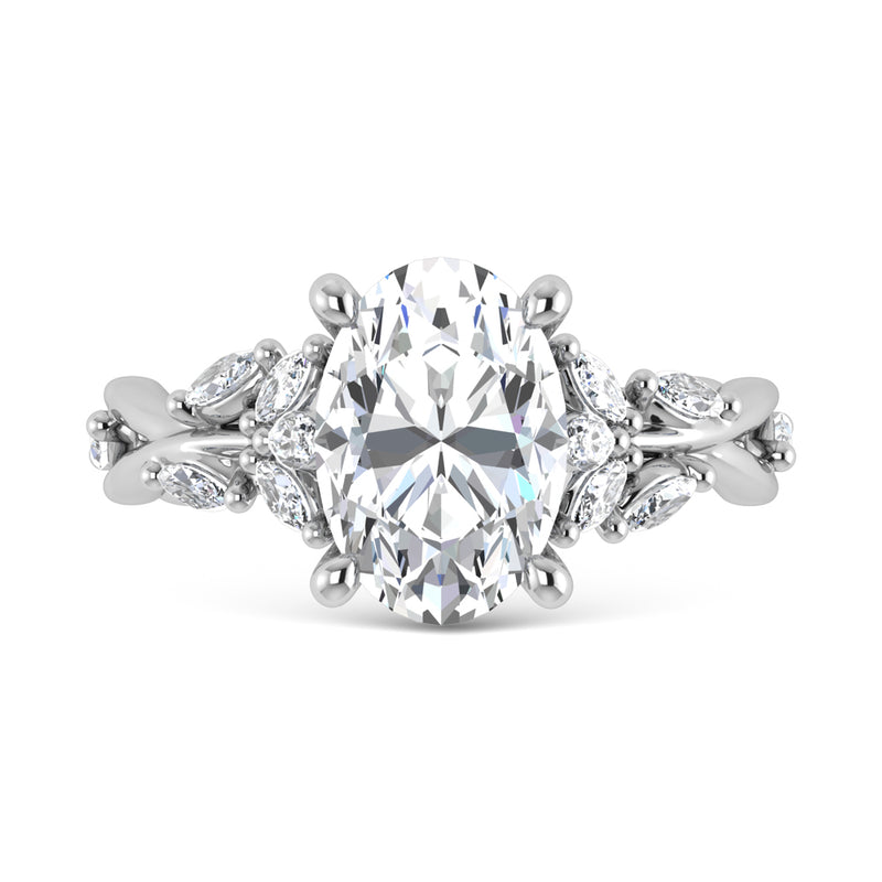 14K White Gold Lab Grown Diamond 3 1/2 Ct.Tw. Marquise and Oval Engagement Ring (Center 3 ct)