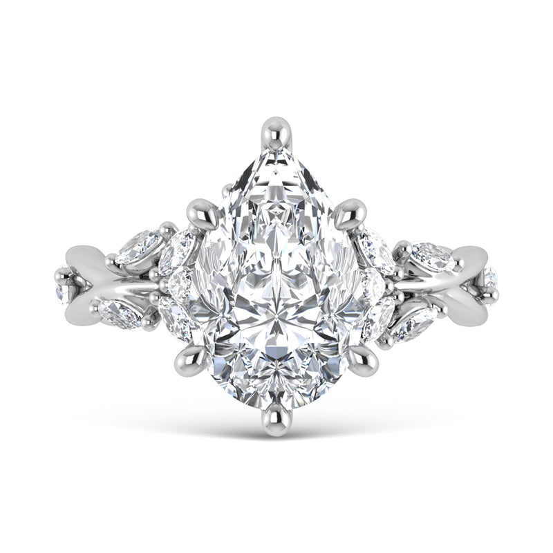 14K White Gold Lab Grown Diamond 3 1/2 Ct.Tw. Marquise and Pear Engagement Ring (Center 3 ct)
