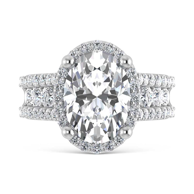 14K White Gold Lab Grown Diamond 6 7/8 Ct.Tw. Round Shank Engagement Ring (Center Oval)