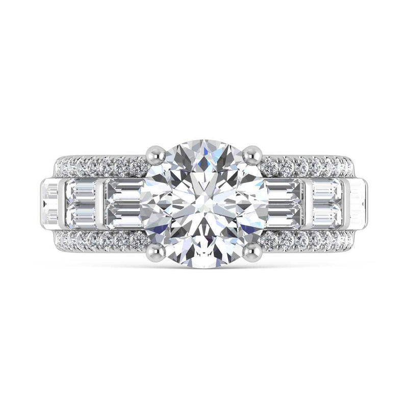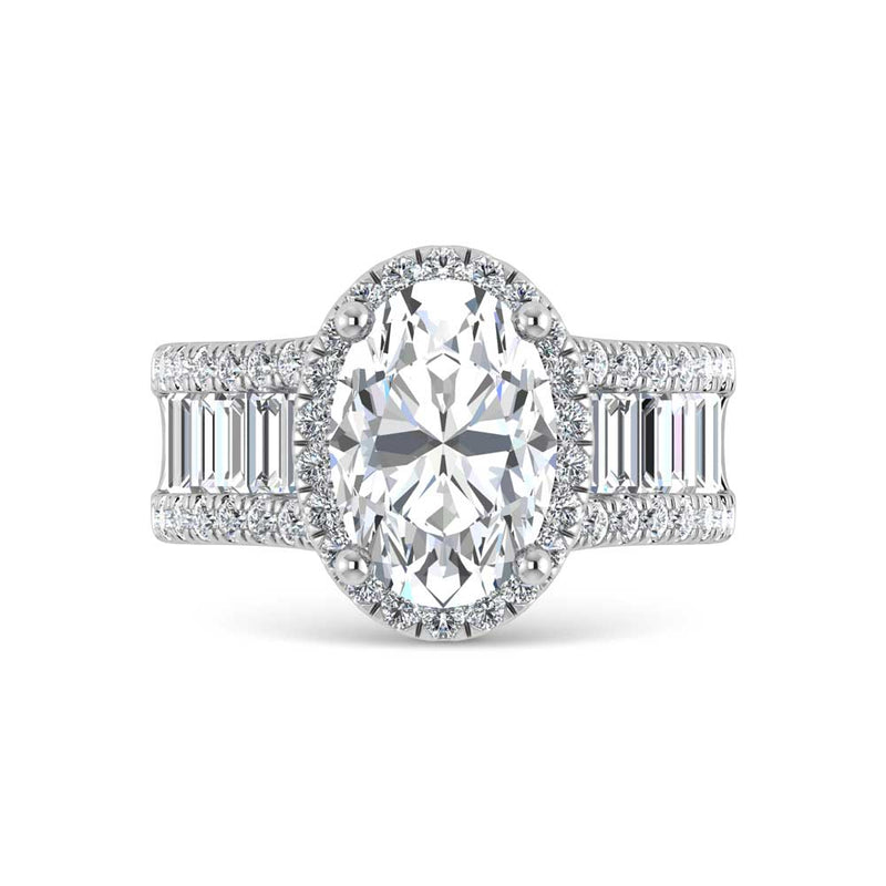 14K White Gold Lab Grown Diamond 4 5/8 Ct.Tw. Round and Baguette Shank Engagement Ring (Oval Center)