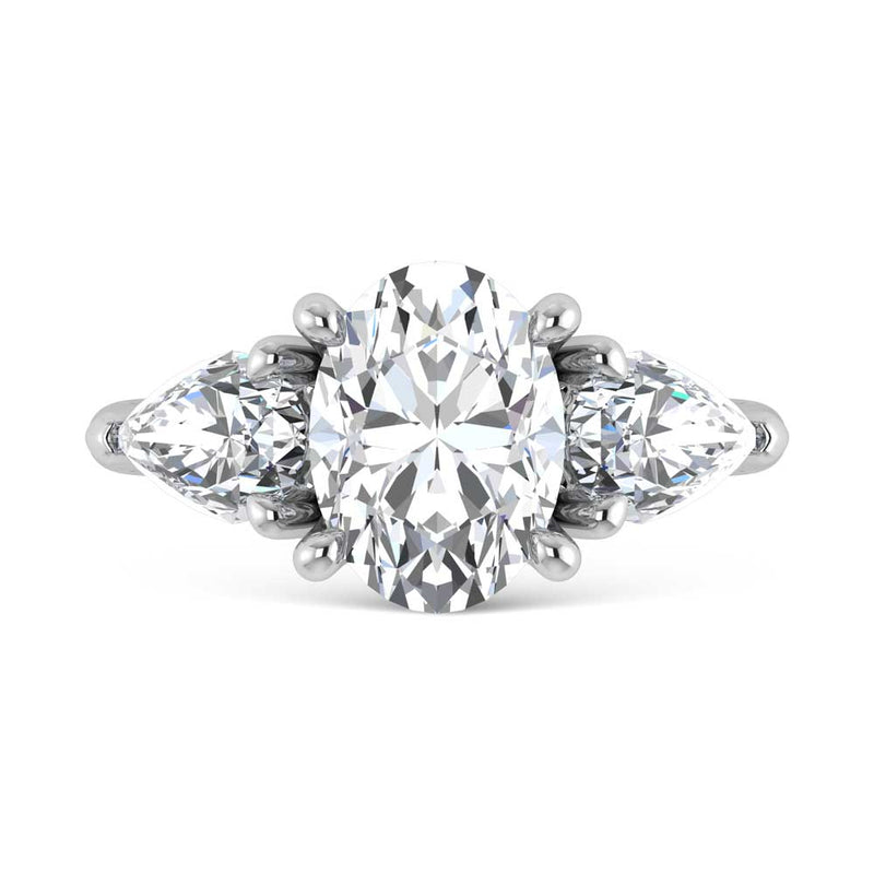 14K White Gold Lab Grown Diamond 4 1/3 Ct.Tw. Oval Shape Three Stone Engagement Ring