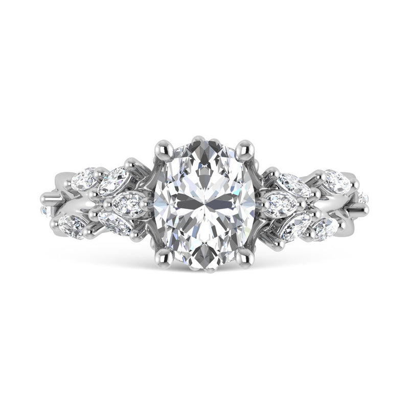 14K White Gold Lab Grown Diamond 2 1/2 Ct.Tw. Oval Shape Engagement Ring (Center 2ct)