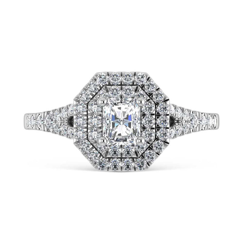 14K White Gold Lab Grown Diamond 1 ct.tw. Radiant Shape Halo Engagement Ring (1/2 ctw Center)