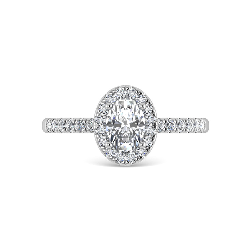 14K White Gold Lab Grown Diamond 1 Ct.Tw. Shank Oval Shape Halo Engagement Ring